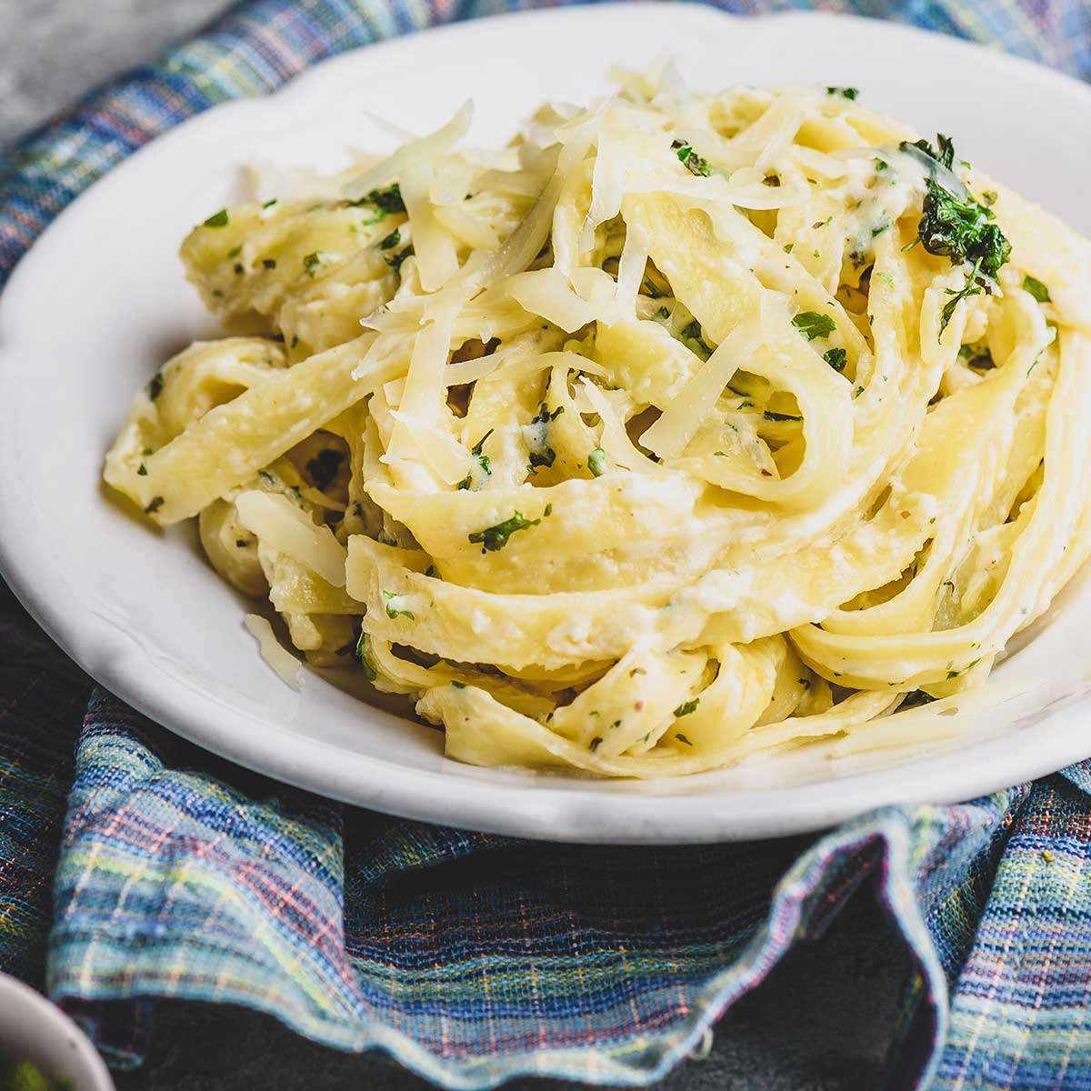 This 10 minute recipe for fettuccine alfredo sauce is made with cream and milk. The simplest ingredients for the perfect, classic alfredo recipe.