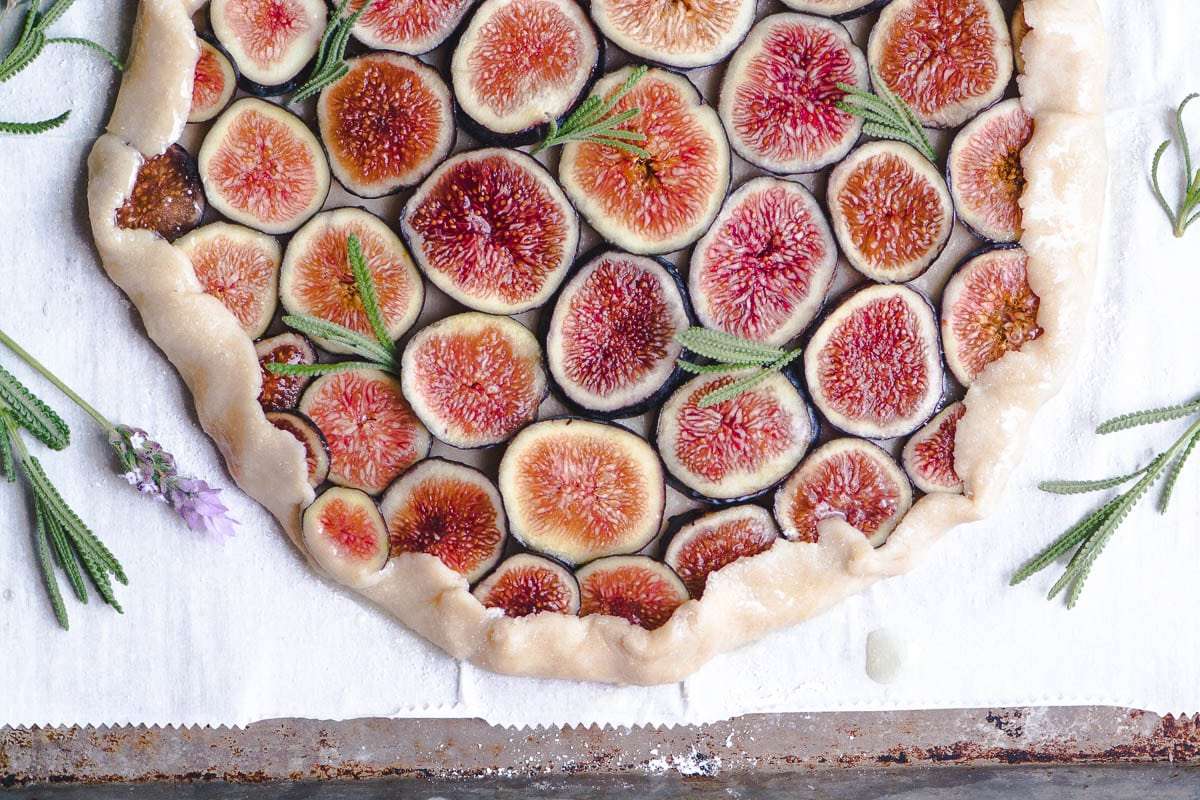 - Arrange the figs as snugly as you can across the dough, leaving a little edge free for folding up around the fruit. Add a few lavender leaves in and among the figs.