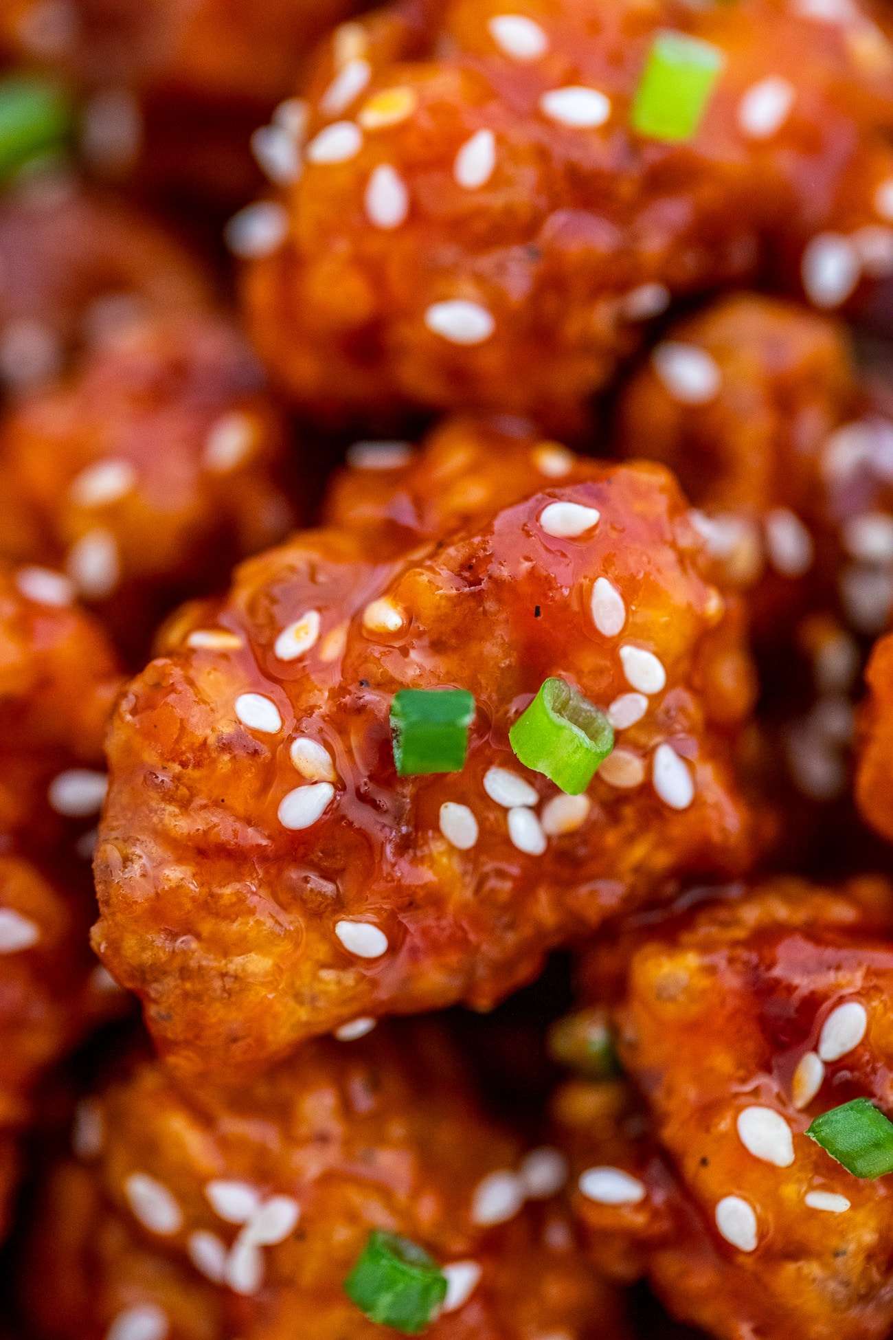 Firecracker Chicken is made with crispy white meat chunks in a sweet, sour, and spicy sauce. This dish is perfect for those who can take the heat!