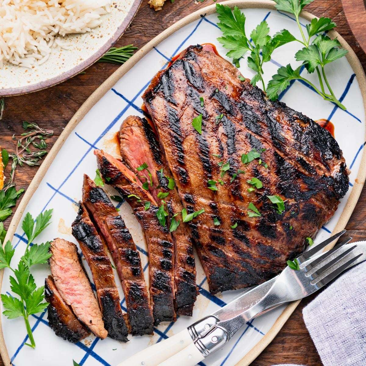 This easy marinated grilled flank steak is healthy, flavorful, and quick!
