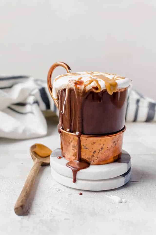 It’s that time of the year where we crave mugs of homemade hot cocoa. This fluffernutter hot cocoa is thick and creamy. It’s topped with a marshmallow creme or as I call it marshmallow fluff. It’s the perfect recipe for all peanut butter lovers!