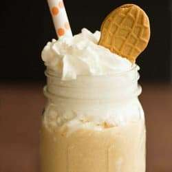 - Place the 1/4 cup of peanut butter in a microwave-safe bowl. Microwave for 30 seconds. Using a spoon, drizzle the peanut butter over the fluff. Grab a spoon and give it a swirl. Drink up!
