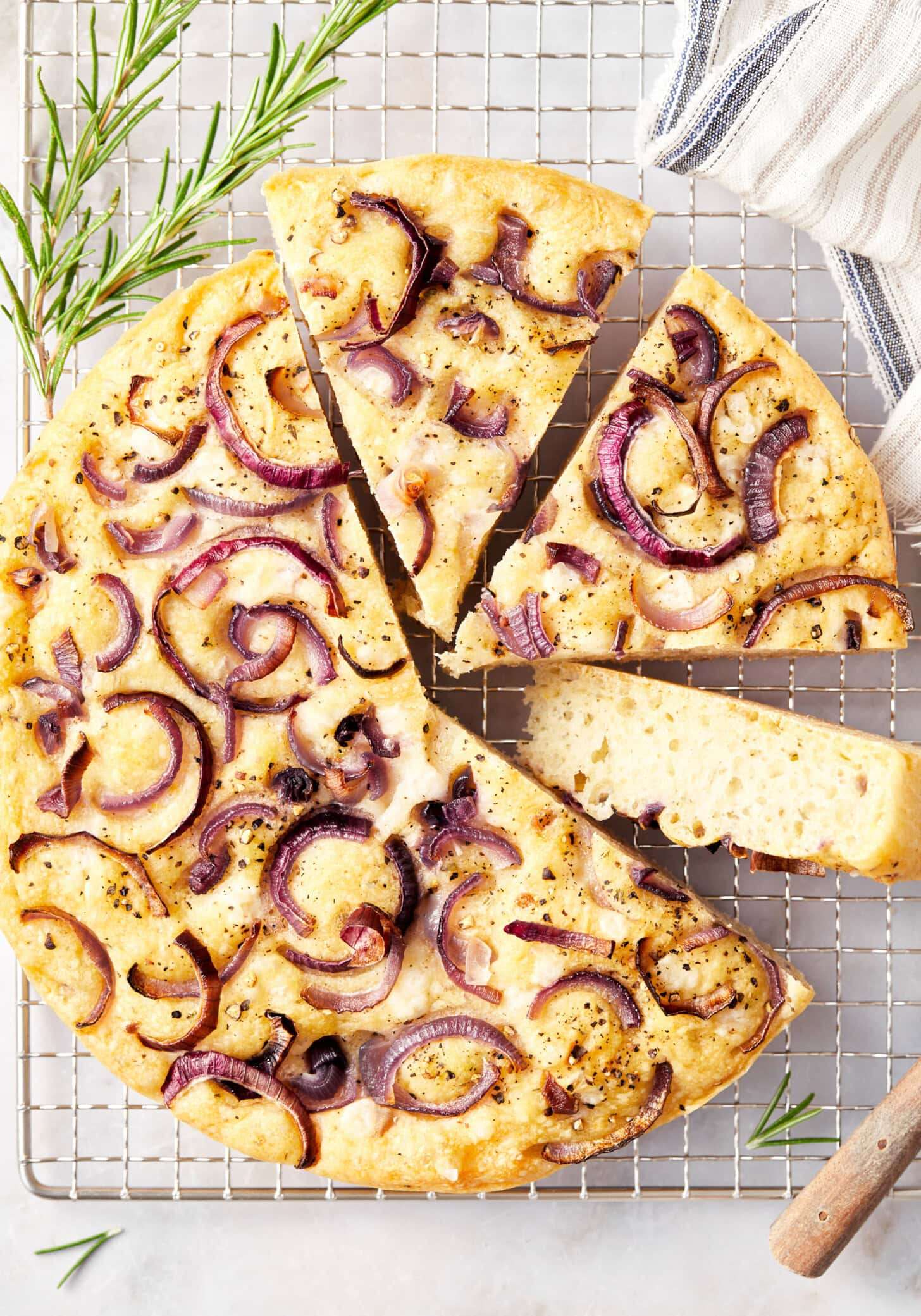 How To Make Focaccia Bread - Seasoned with lemon zest, fresh rosemary, and red onions. This amazing fresh bread is so flavorful and comforting.