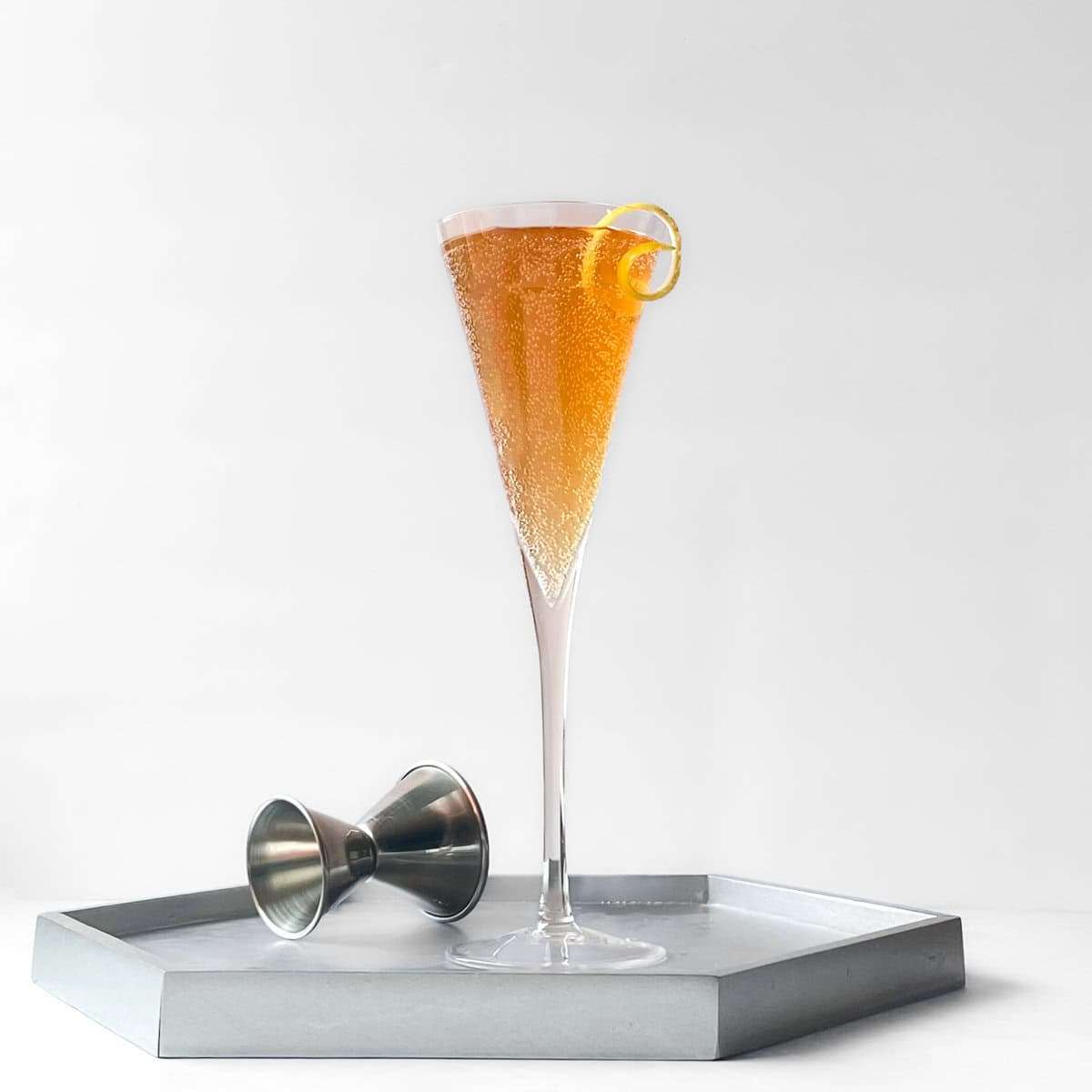 - Combine the bourbon, simple syrup, lemon juice, and a cup of ice in a cocktail shaker. Shake for 20 seconds until chilled, then double strain into a champagne flute.