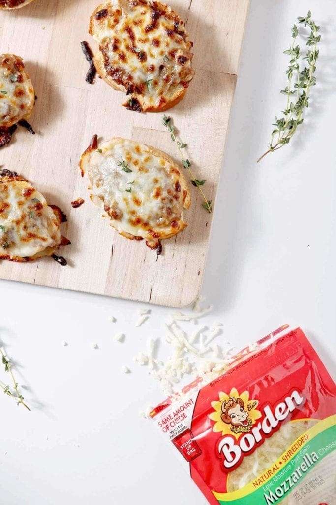 Wow friends and family with this ooey, gooey, cheesy mash-up: French Onion Bruschetta! Onions cook down and caramelize before soaking up beef broth. Season with thyme, then scoop the onions onto sliced bread. Sprinkle with two types of cheese and broil until browned and gooey. The creamy caramelized onions and cheese pair beautifully with crusty bread. French Onion Bruschetta is sure to become a new favorite appetizer or entree.