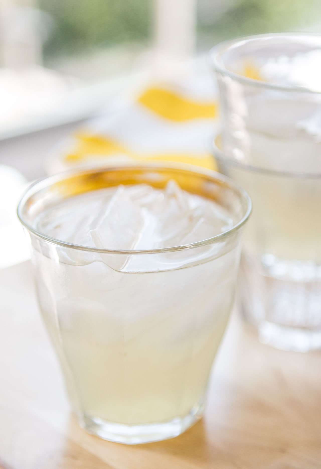 I like this drink with lots of ginger so I use the larger amount indicated, but feel free to use either. If you think you'd like it less-sweet (although I don't find this too sweet), you could reduce the sugar to 1/3 cup (65g.) If you wish to use a liquid sweetener, such as maple syrup, honey, or agave nectar in place of the sugar, I'd try starting off using 1/3 cup then tasting it, adding more if you wish. If using Meyer Lemons, you'll likely want to use the lower amount of sugar as they are naturally sweeter.