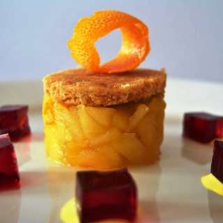 Chilled Apple and Orange Crumble with Fresh Strawberry Jelly and Custard