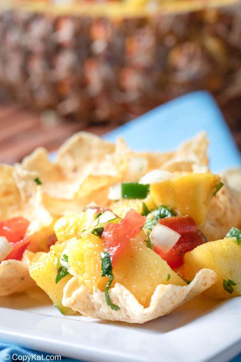 This vibrant pineapple mango salsa combines sweet tropical fruits with jalapeño, herbs, and spices for the perfect topping or dip for any occasion.