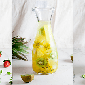 This fresh pineapple and passion fruit mojito is great for parties. Add plenty of fresh mint, lemon and ice for the perfect refreshing summer drink.