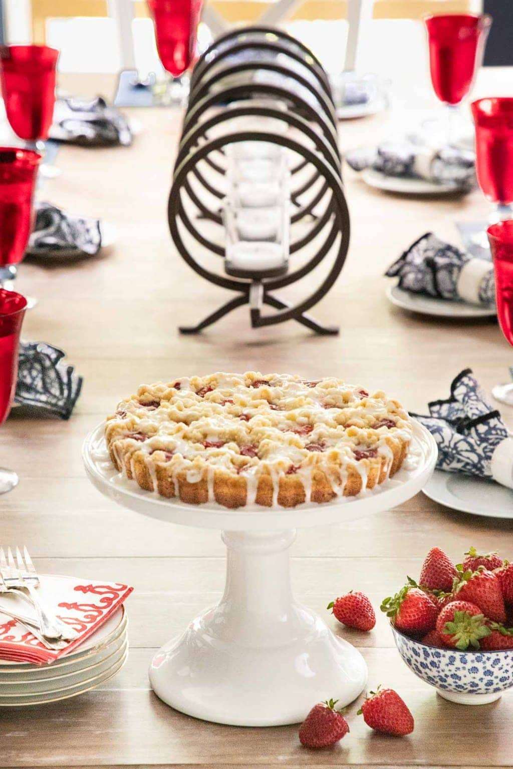 Need an impressive, delicious, easy dessert? This Strawberry Jam Shortbread Tart, with a ribbon of sweet jam and fresh berries nestled between layers of buttery crust and crisp, lemon glazed crumble, is IT!