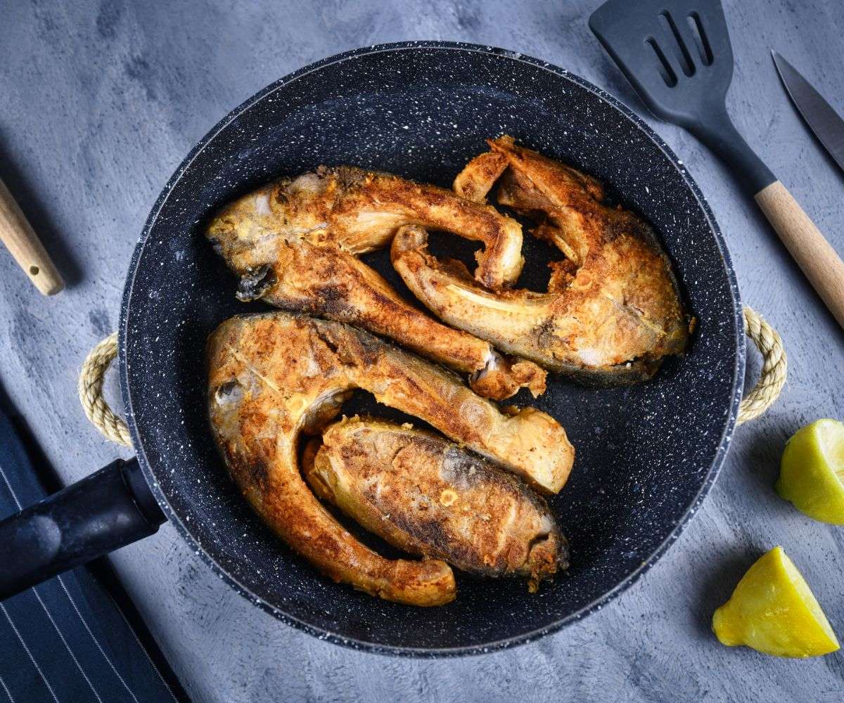 - When the oil has heated, it's time to add the fish. Now, work in batches if you need to, placing the fish in the pan and frying it on both sides until it's crispy and golden brown. You should give it around 4-5 minutes per side.