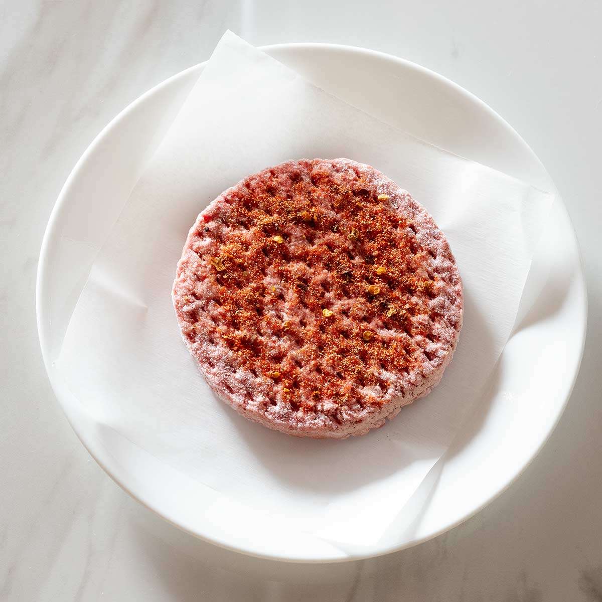 - Take the frozen hamburger patties out of the freezer and separate. (Use a spatula to separate them if they're sticking together.) Let the patties sit out at room temperature for a few minutes until starting to thaw on the surface. (This will help the seasoning stick to the patty.)