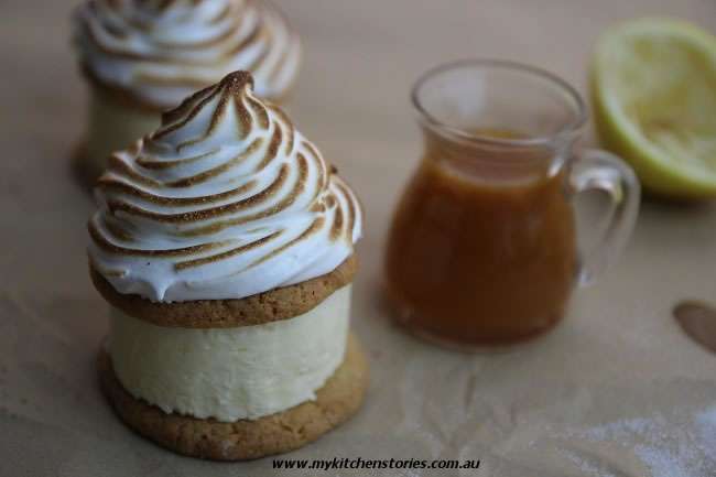 - First pipe some meringue onto 6 biscuits. Using a blowtorch brown the meringue or pop under a hot grill till coloured.