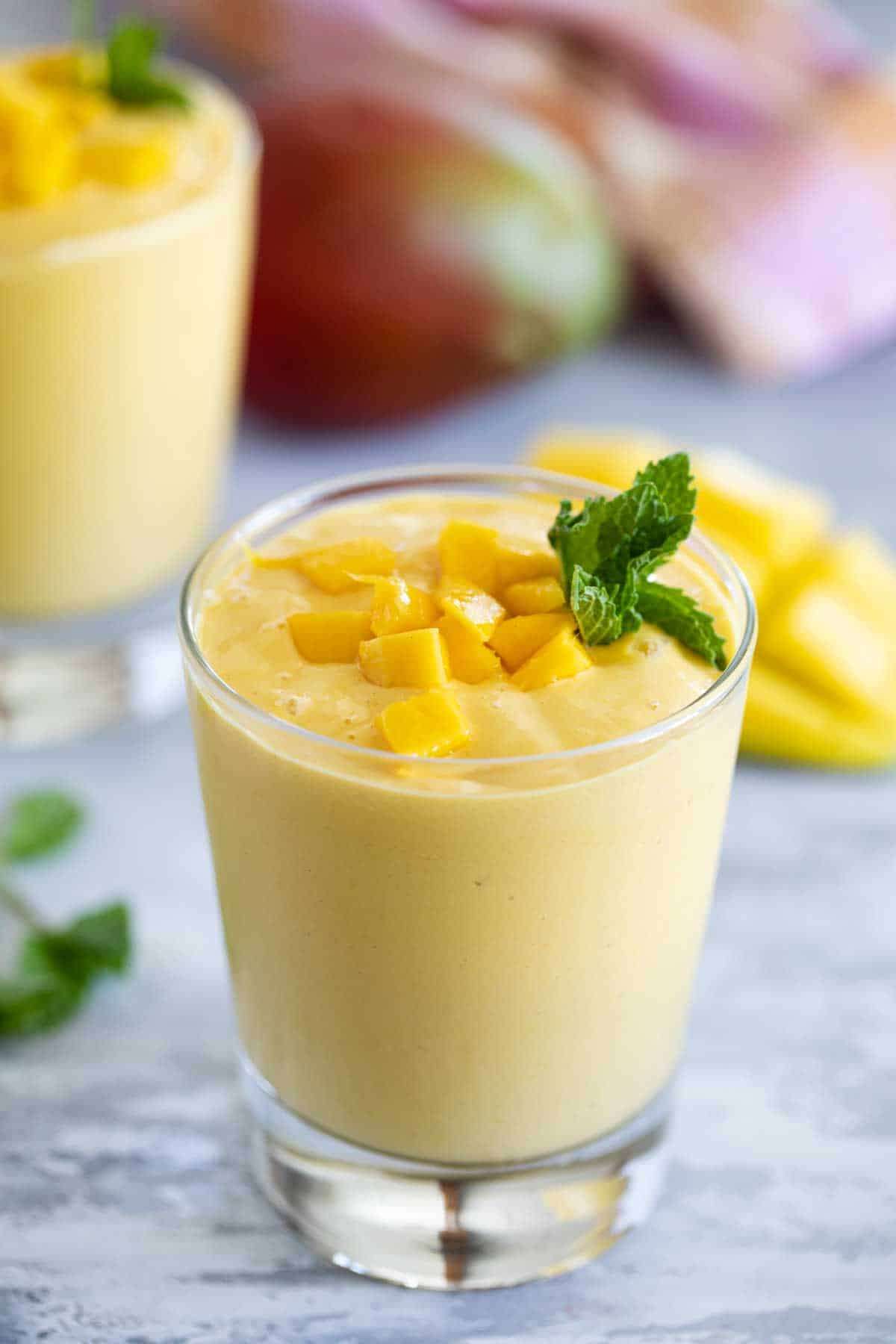 - Pour into glasses and serve immediately. Garnish with more fresh mango, if desired.