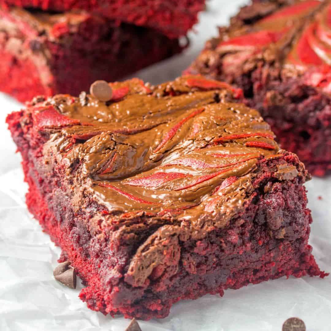 Swirled Red Velvet Brownies are the perfect treat to calm that sweet tooth! With delicious chocolate swirls, this rich and fudgy brownie is irresistible!