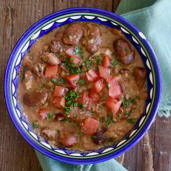 - Sirva los ful medames con una cucharadita de perejil picado y tomates, y rocíe con aceite de oliva.