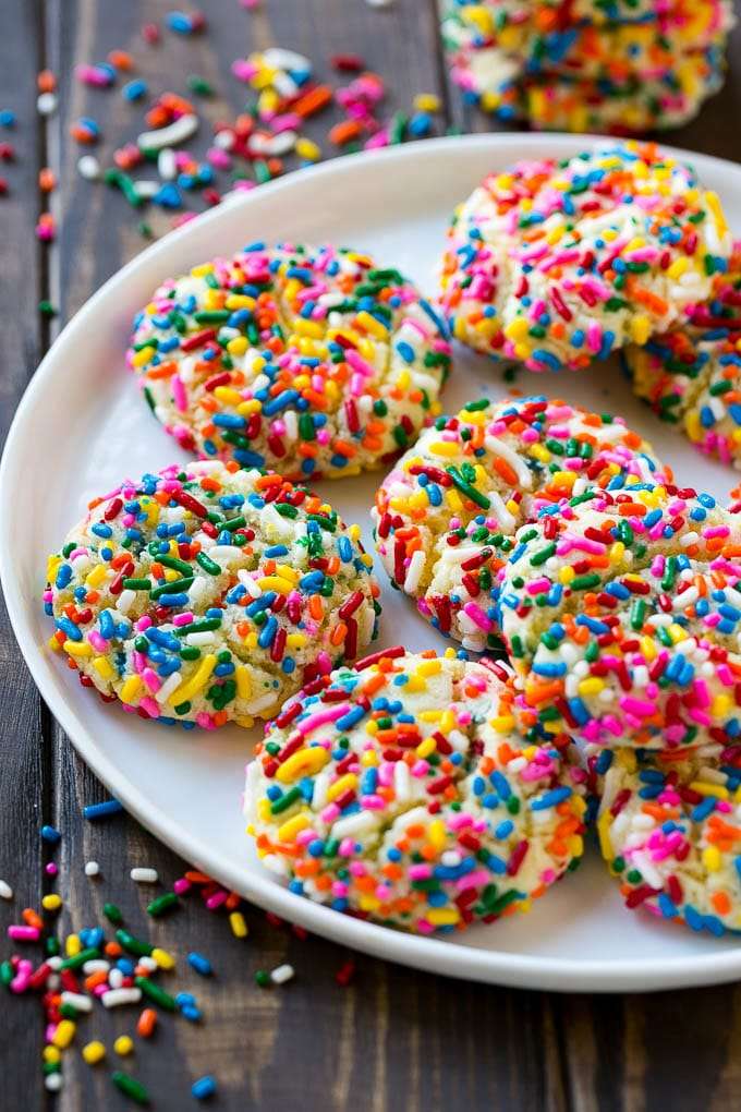 - Pour the remaining 1/2 cup of sprinkles onto a plate. Roll the balls of dough around in the sprinkles to coat.