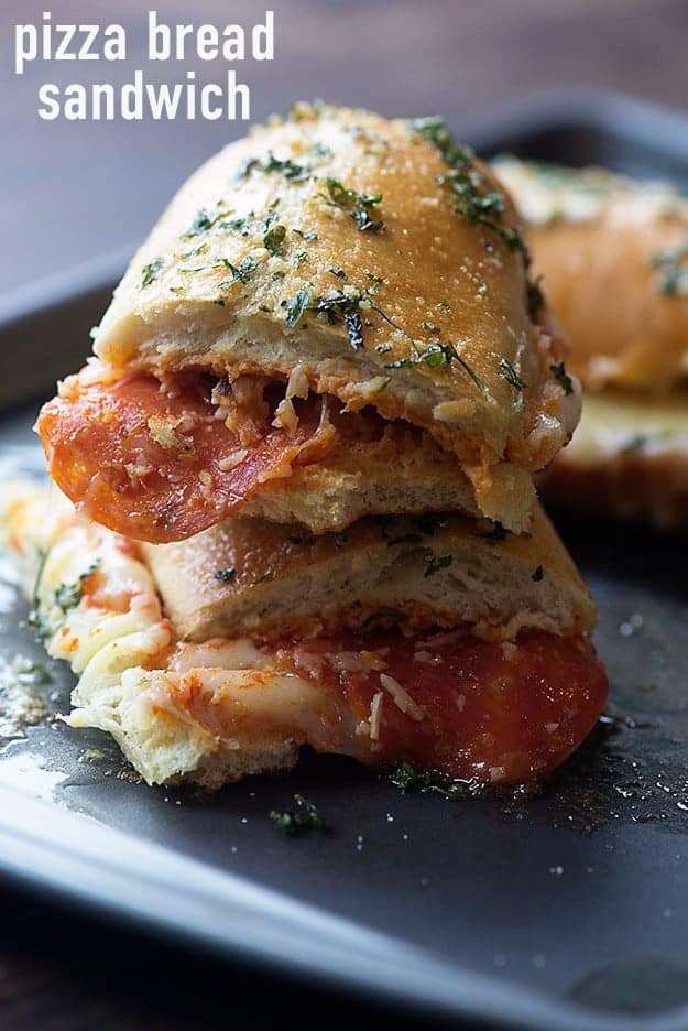 If you've ever had French bread pizza, you know how amazing this recipe is going to be! It's seriously the best sandwich, loaded with both pizza and garlic bread vibes.