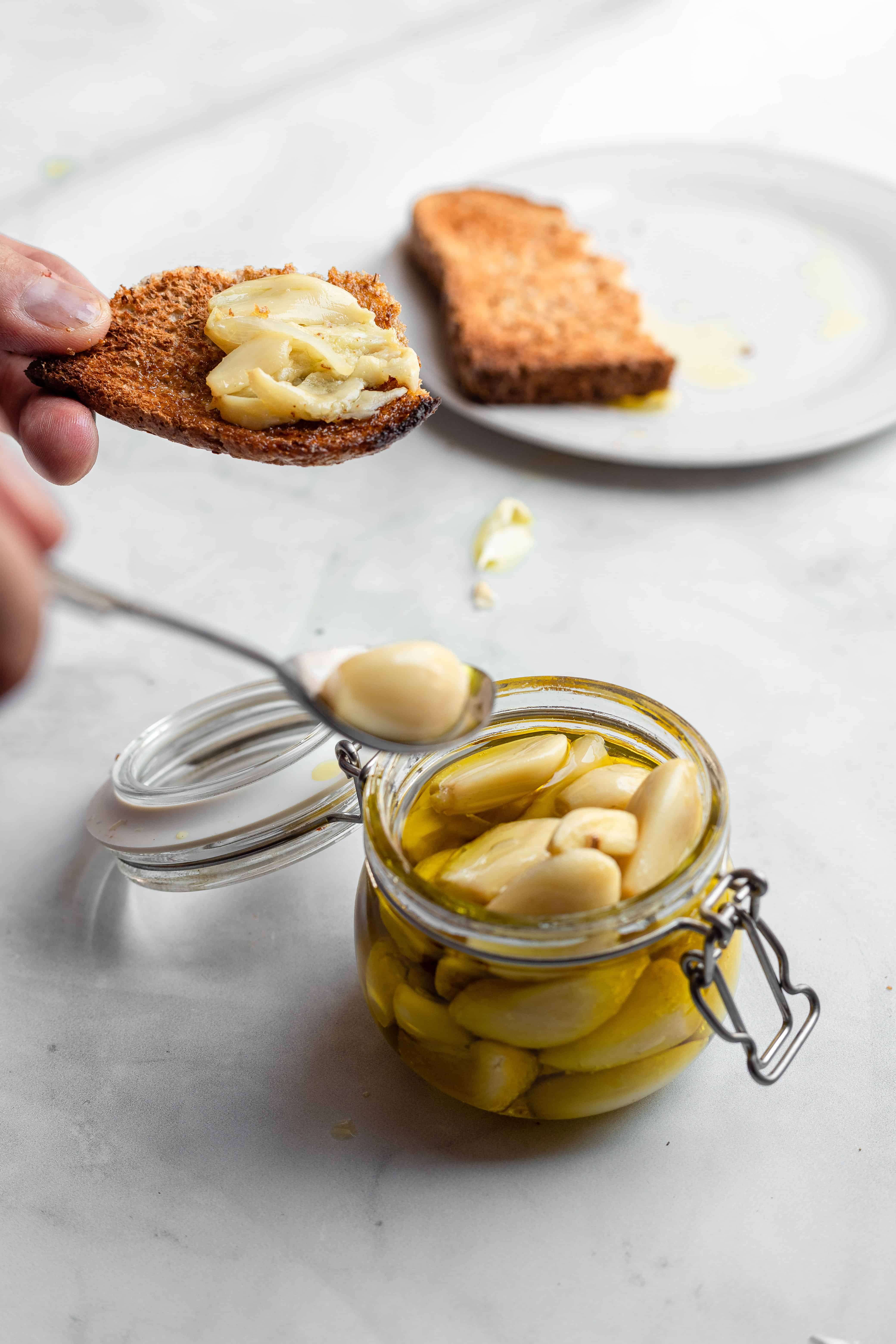 - Storing leftover confit: Leftover garlic confit MUST be stored in the fridge, and will last 2-3 weeks tightly covered in a clean jar in the fridge.