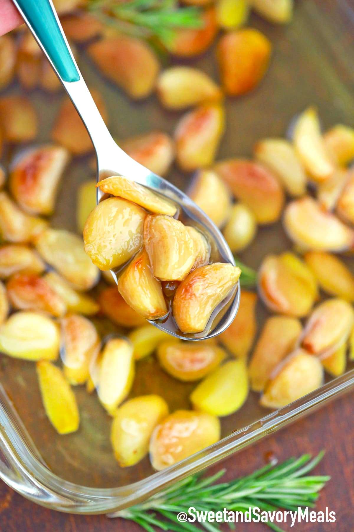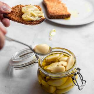 Garlic Confit is a savory and flavorful mixture made from roasted garlic, olive oil, and fresh herbs. Perfect to use as a spread!