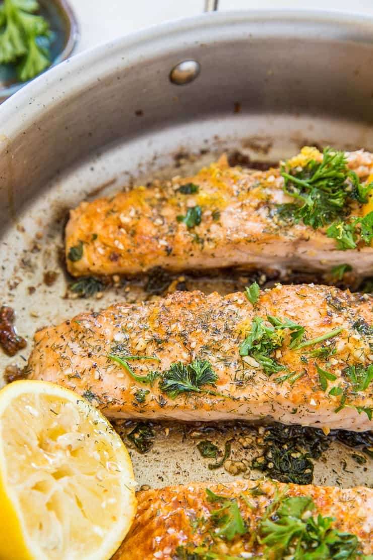 - Cover skillet and cook an additional 2 to 5 minutes, until salmon reaches desired done-ness. Serve salmon with favorite side dishes and enjoy!