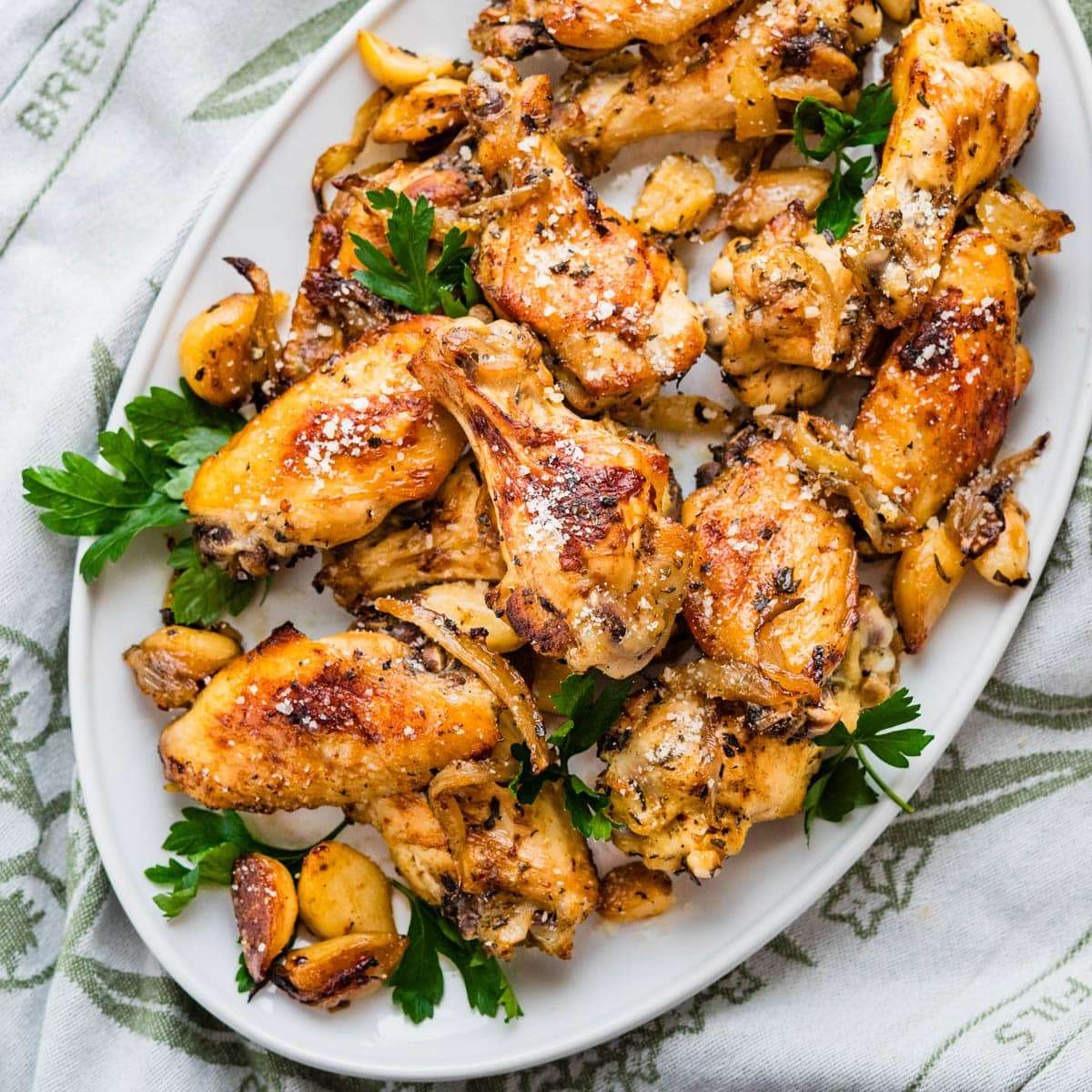 - To get a head start on the garlic wings, begin marinating the chicken the day before. You can also blanch and peel the garlic cloves a few days ahead. Store them covered in the refrigerator for up to 3 days.