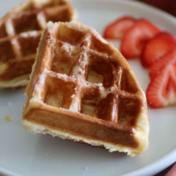 - Cuire les gaufres dans un gaufrier jusqu'à ce qu'elles soient dorées, environ 2 à 3 minutes de chaque côté.