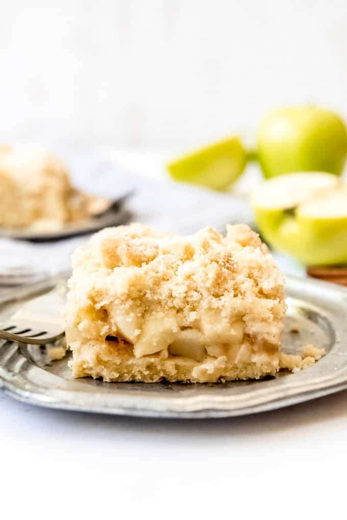 This German Apple Cake with Streusel Topping [Apfelkuchen mit Streusel] is one of my favorite traditional German desserts that I know you are going to love too! The tender, juicy apple filling is topped with a sweet, crunchy streusel on a buttery shortbread crust.