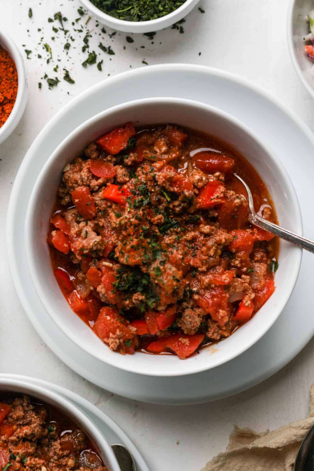 - The longer this chili simmers, the more flavor will develop. It also may become a little more dry. Add in broth, tomato sauce or even water if needed.