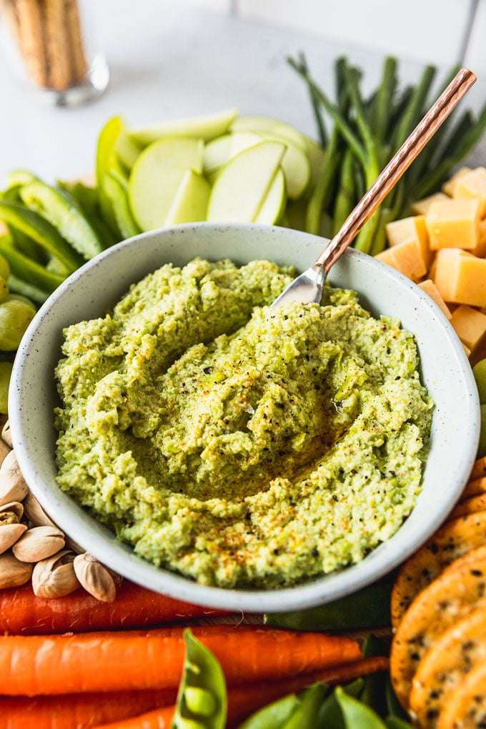 Edamame Hummus is an easy and quick recipe, perfect for a lunch or appetizer. It's fresh, bright, and creamy, you won't be able to stop dipping!