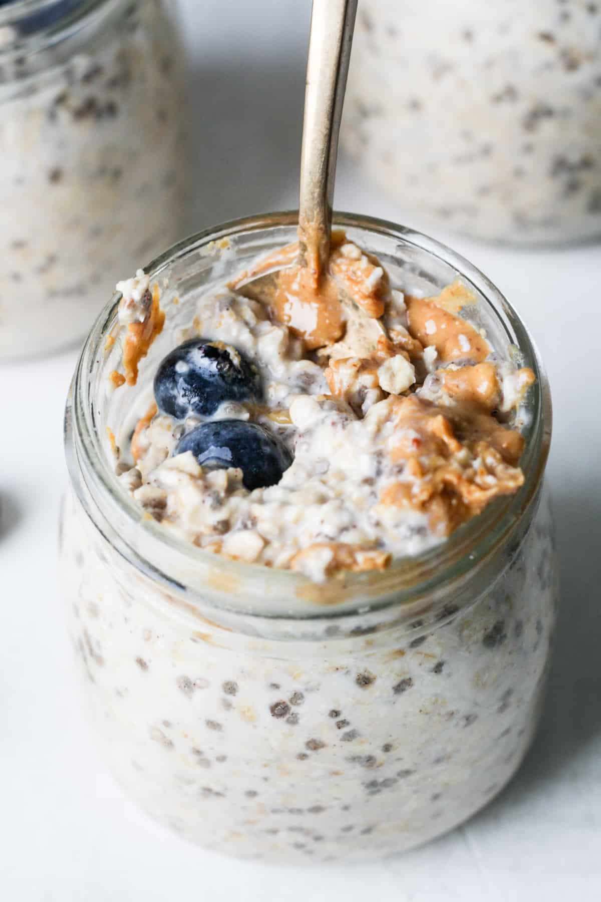These protein overnight oats are thick, creamy, and packed with protein! This easy recipe is great as a healthy breakfast or snack. Add your favorite toppings for one delicious jar of oats!