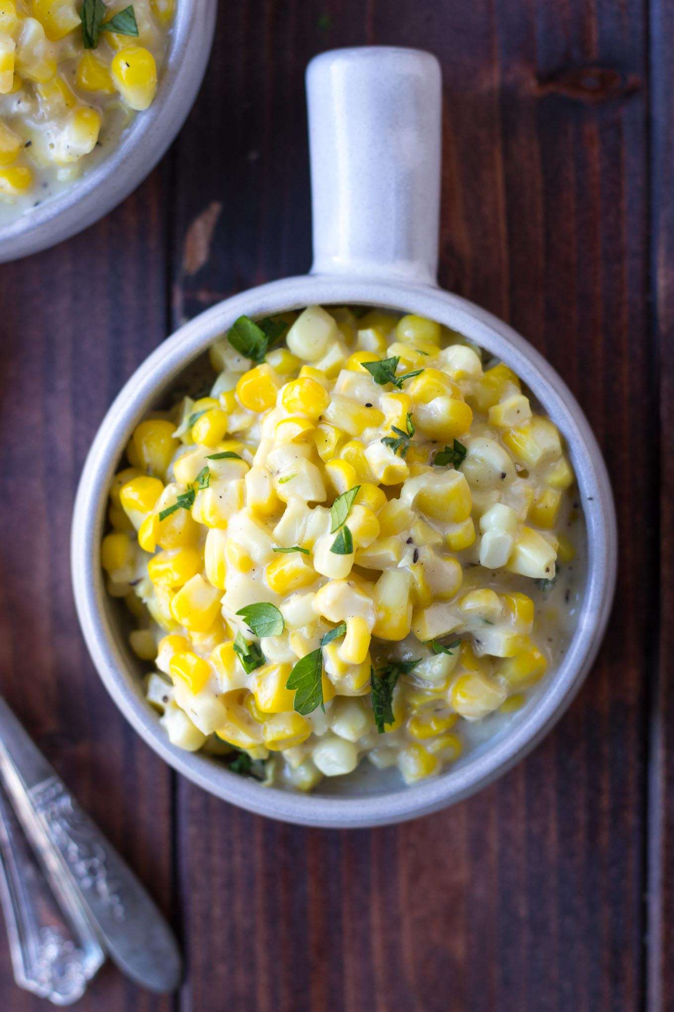Skillet Creamed Corn - fresh sweet corn, rich creaminess, and soul-comforting herbs. Your next family dinner favorite!