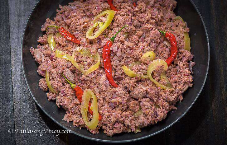 - Add shrimp paste, siling pansigang, ang Thai chili. Stir. Continue to cook until the liquid completely evaporates.