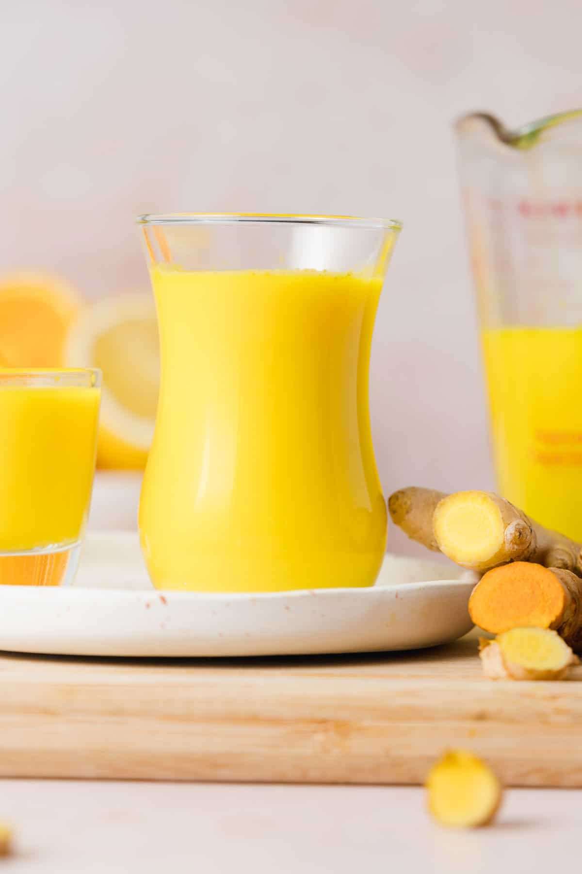You only need a handful of ingredients to make these energizing lemon ginger turmeric shots at home! These shots pack a punch and are much more affordable than store-bought. No fancy equipment needed — just a blender and sieve!