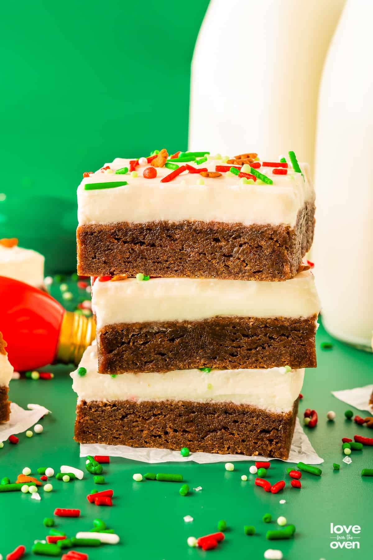 Deliciously chewy gingerbread bars are topped with an irresistible cream cheese frosting for an easy holiday dessert everyone will love!