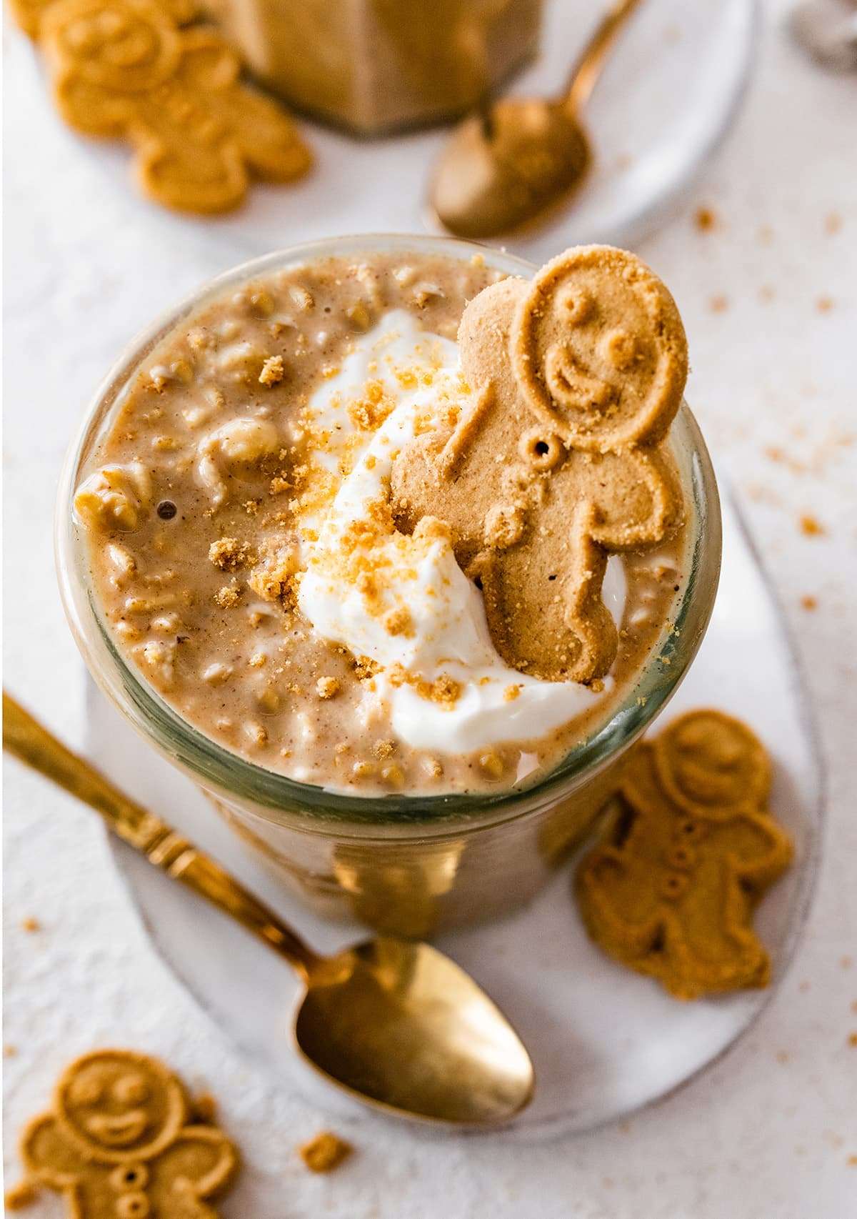 These gingerbread overnight oats are made with cozy spices and molasses and packed with over 20 grams of protein. They're an easy make-ahead breakfast option for the busy holiday season.