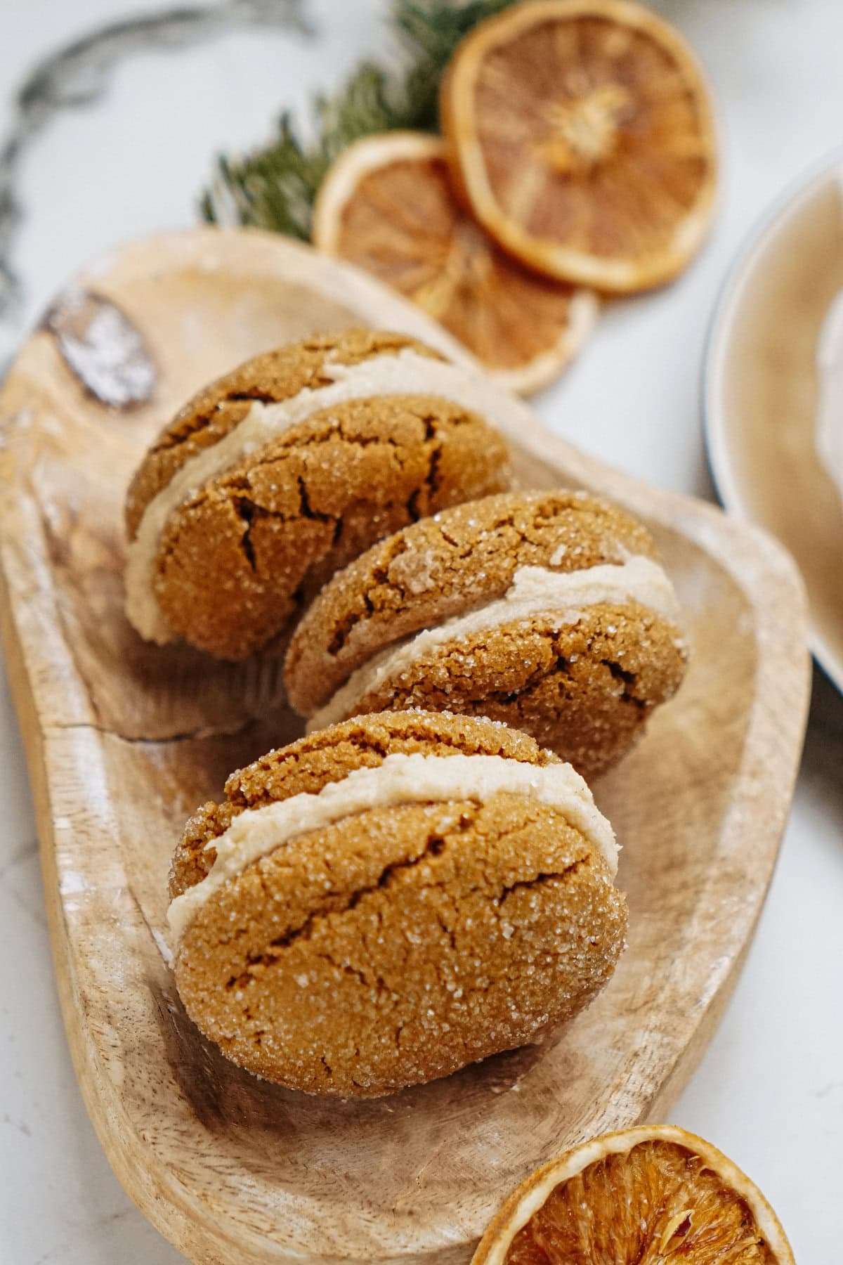 - Spread 1/2 to 1 tablespoon of buttercream onto one cookie. Top with another cookie and place onto serving platter.