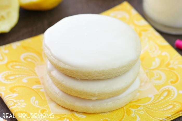 - In a medium bowl, whisk together the powdered sugar and lemon juice until smooth. Dip each cookie top into the glaze. Return to the wire rack, glaze side up. Let cookies set until icing has set.