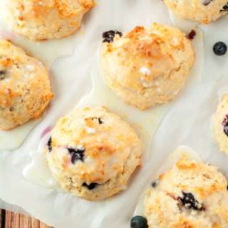Tender lemon scones are topped with a lemony glaze for a bright addition to any breakfast or brunch menu.