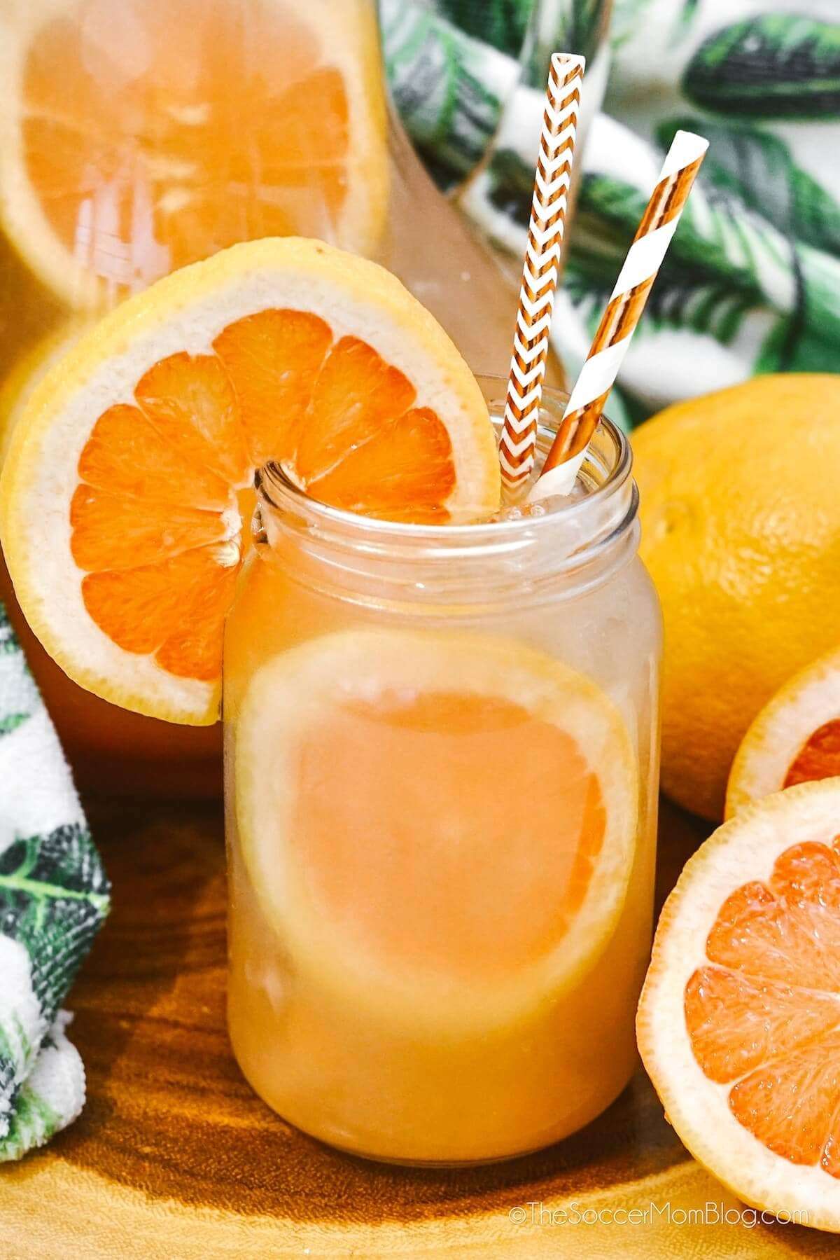 - Add grapefruit juice, honey, and apple cider vinegar to a pitcher.