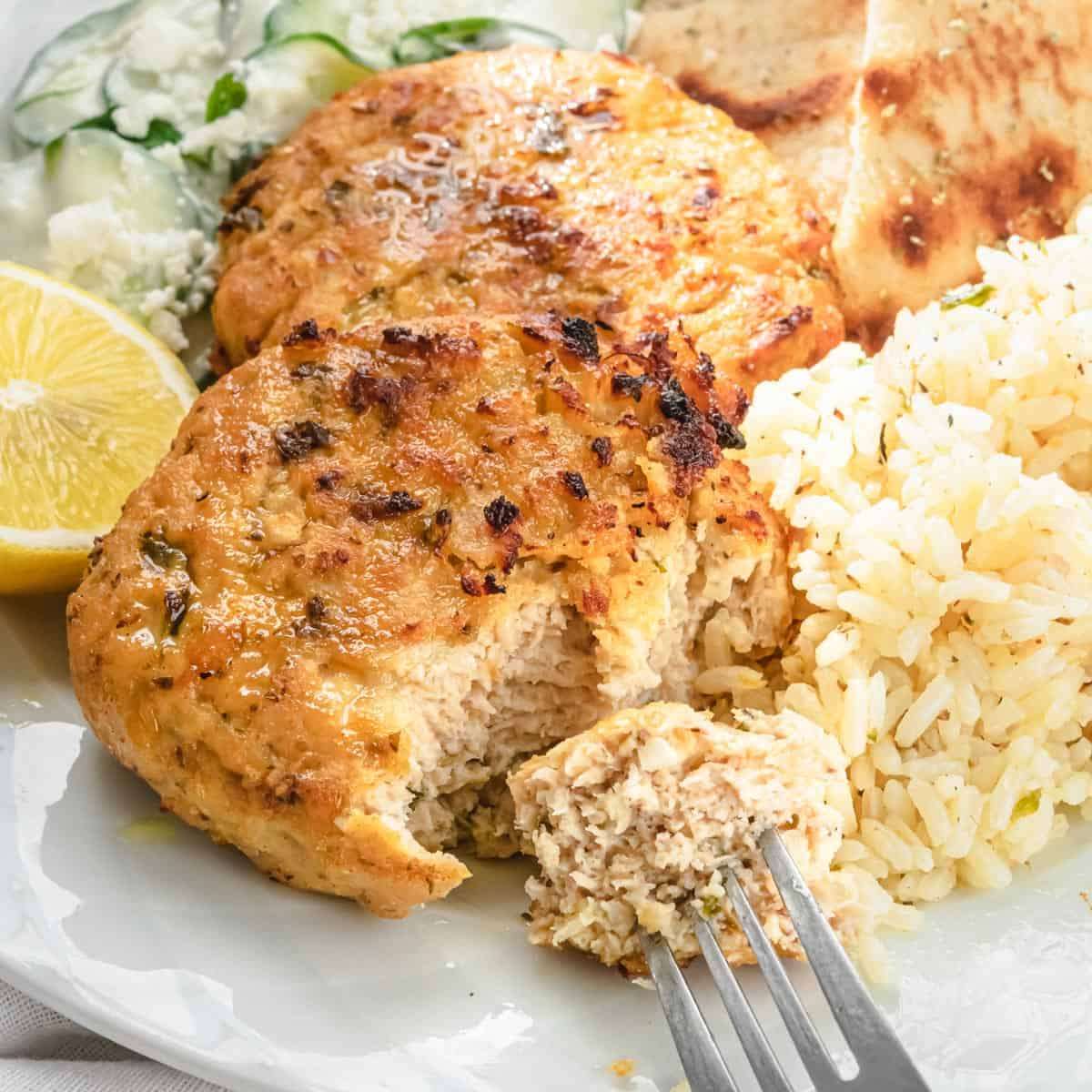 Greek Chicken Patties With Lemony Parboiled Rice