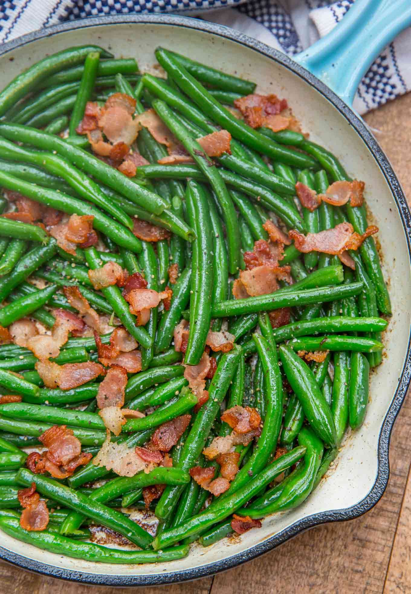 Green Beans with Bacon made with green beans, bacon, and seasoning are fresh, crisp, and savory, ready in under 15 minutes!