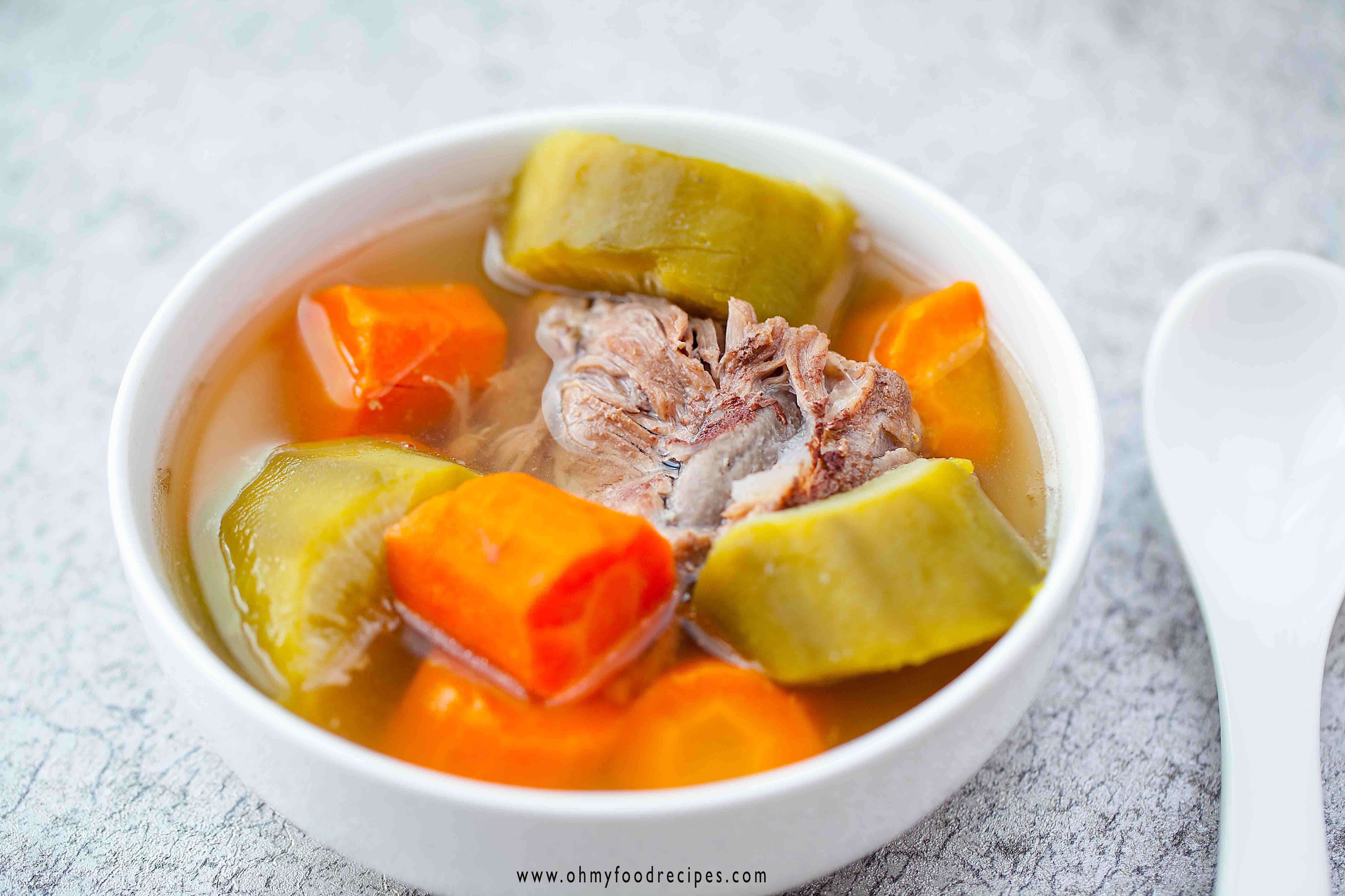 - Put all the ingredients pork bones, carrots, green radish into a pot, and add 10 cups of water. Next, turn on fire to high and let it boil. Then, turn the fire to medium-small and simmer for 1.5 hours.