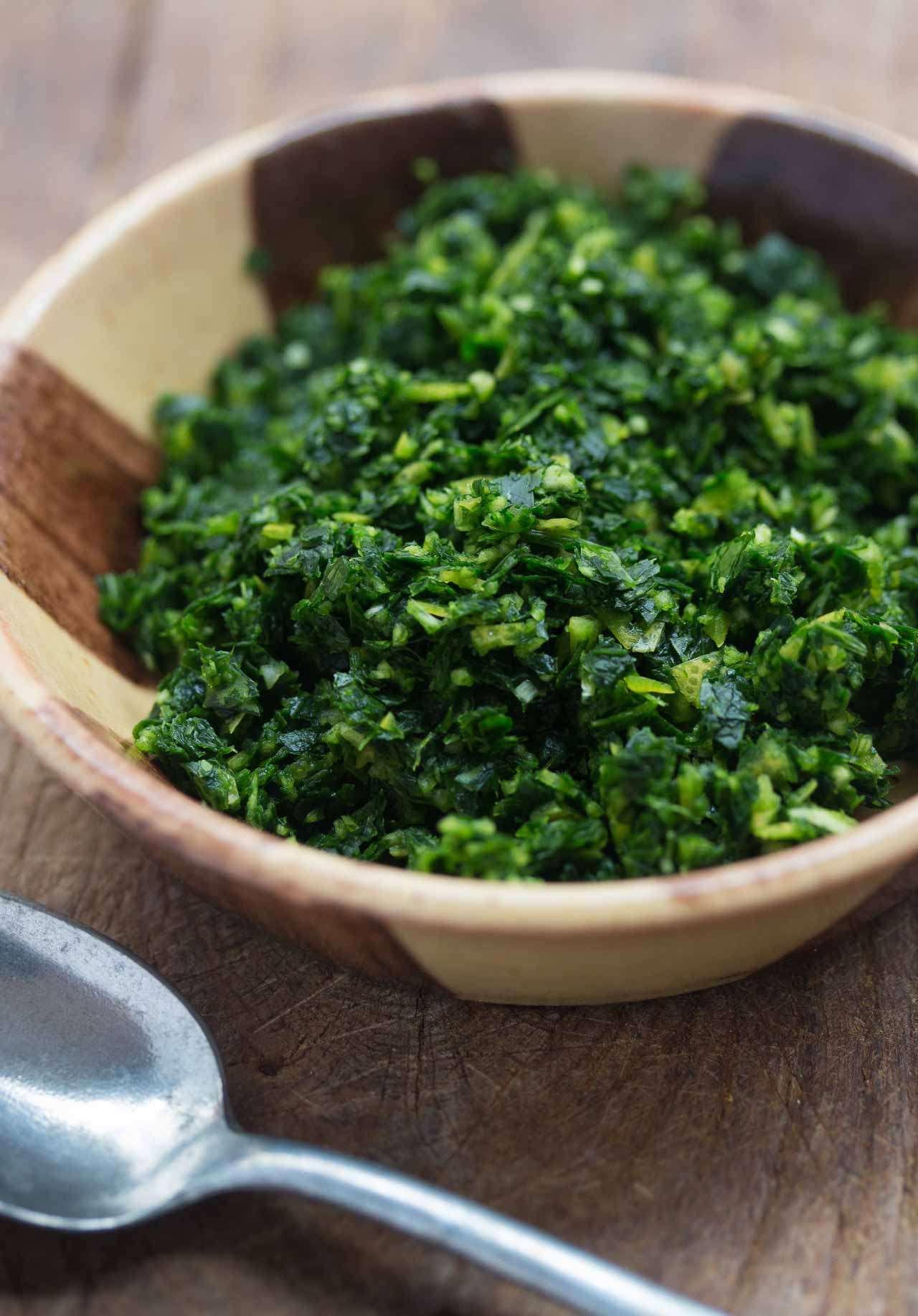 Be sure to use flat-leaf parsley. It should be washed and dried very well; a salad spinner works best for drying herbs.