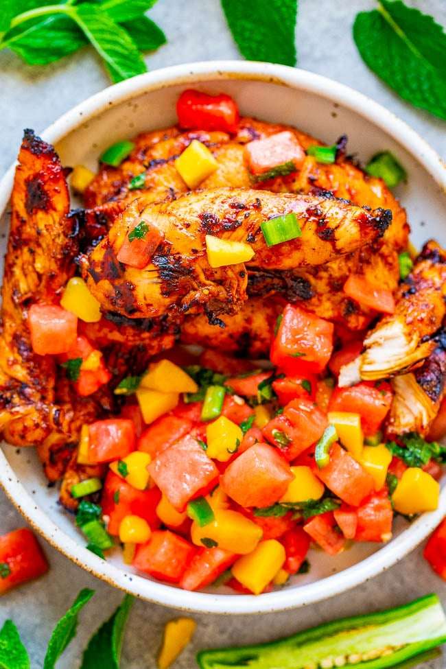 Grilled Chicken With Watermelon Mango Mint Salsa