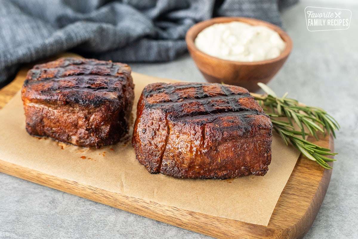- Let the filets rest out of the refrigerator for 30-40 minutes prior to grilling (helps keep the meat tender. If you apply heat to chilled meat it shocks it & causes it to toughen up).