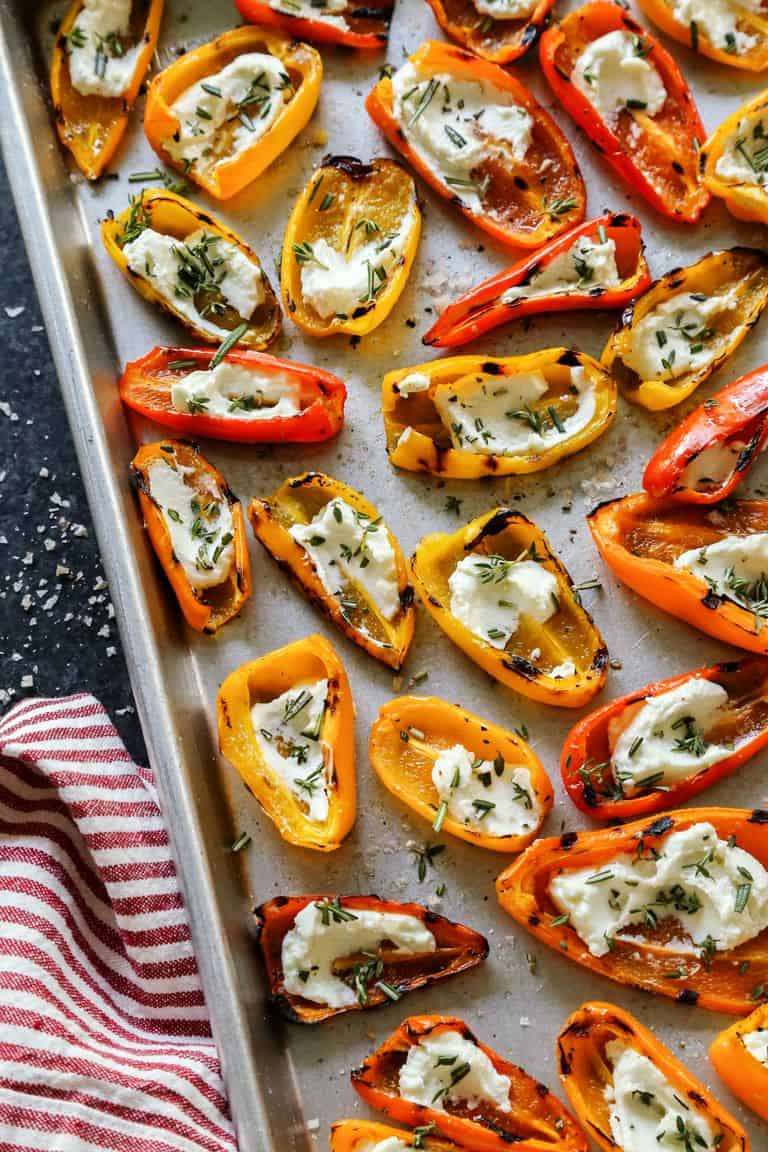 These Grilled Mini Sweet Peppers with Goat Cheese come together in just 3 steps! These little peppers are grilled until softened and charred, then filled with tangy goat cheese and herbs. A quick and easy summer appetizer or side dish for any meal.