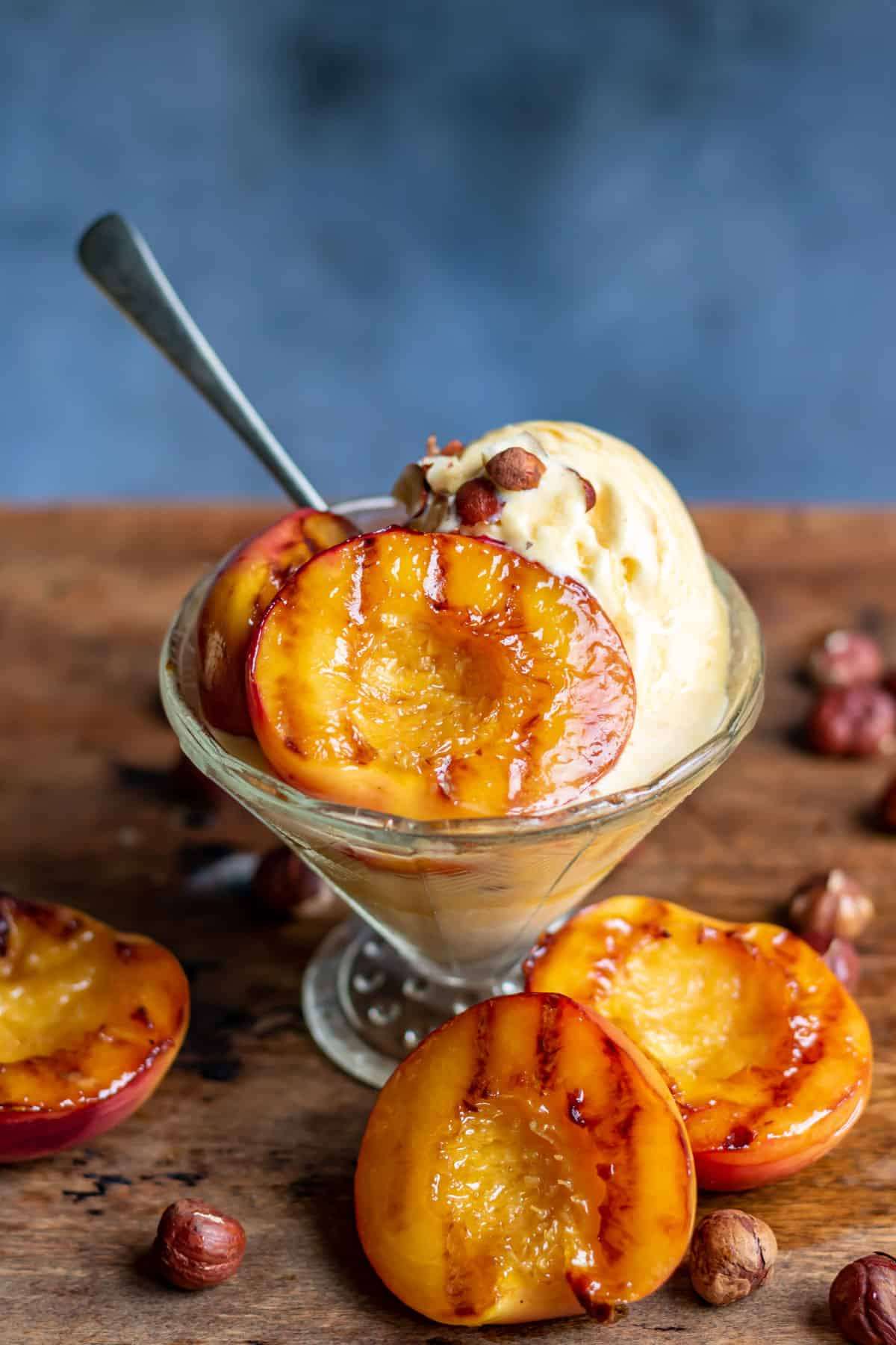 Grilled Nectarines with maple syrup and brown sugar are a perfect way to enjoy sweet stone fruit with a charred maple twist. Ready in 15 mins.