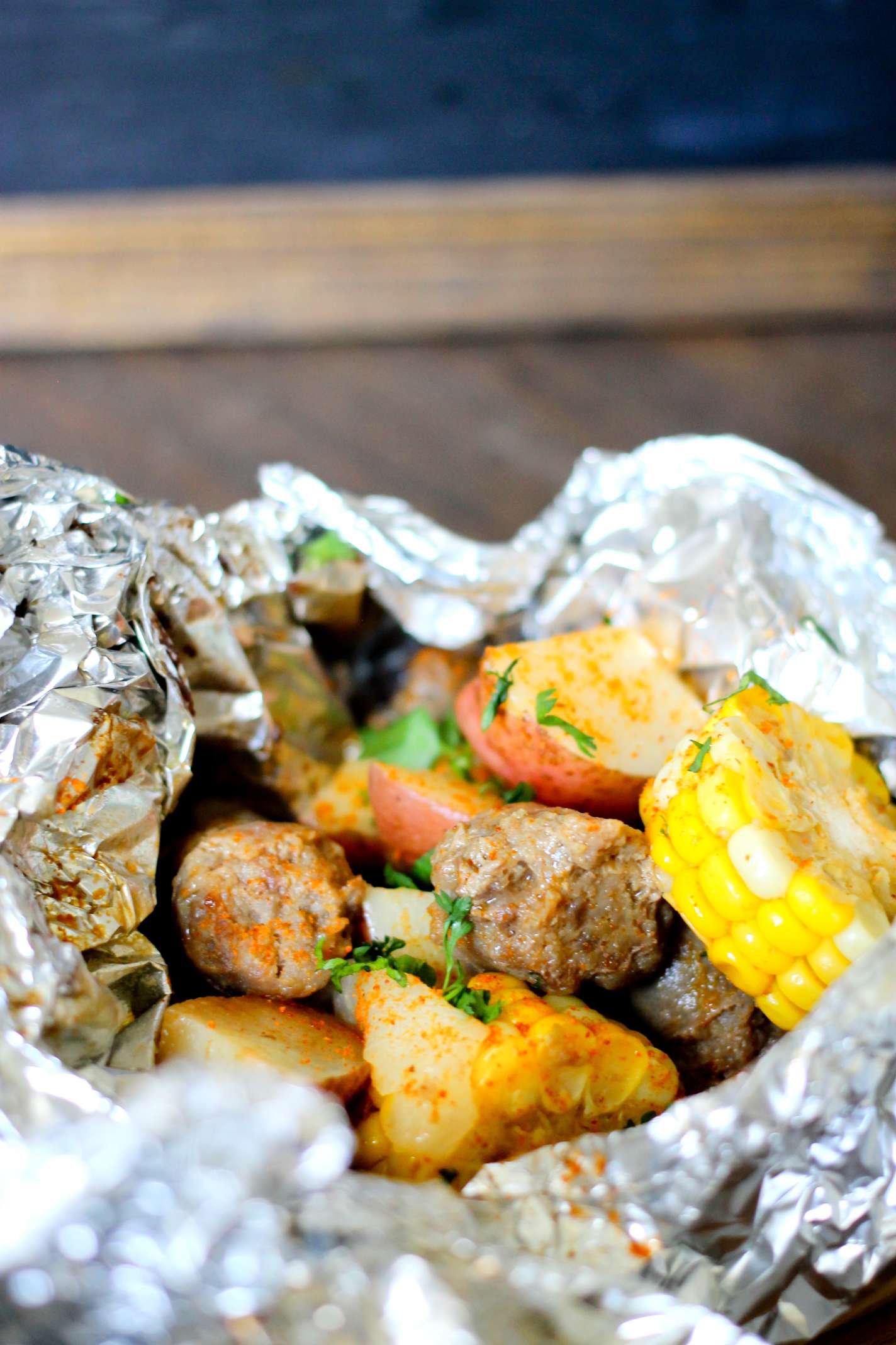Grilled Sausage Foil Packs are loaded with delicious Yuengling infused sausage, red potatoes, mini corn cobs, and onions! Perfect for a quick easy dinner!