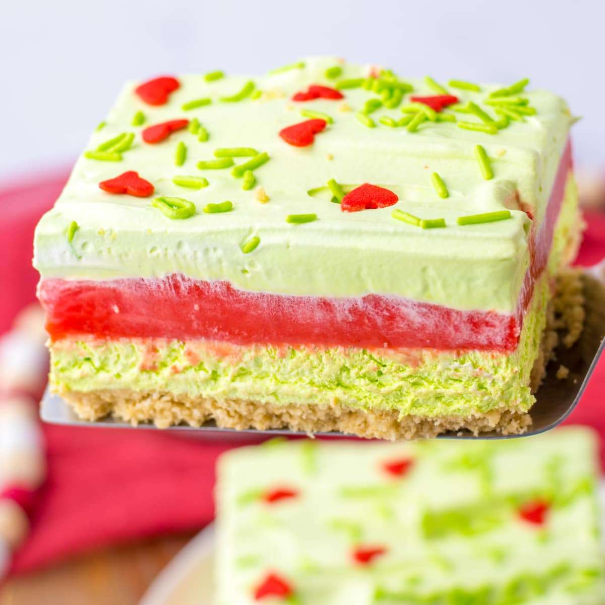 This Grinch Cheesecake Lush Dessert is a festive, no-bake holiday treat. It has vanilla cookies, fluffy cheesecake, and a creamy peppermint pudding layer. It captures the holiday spirit with a fun Grinch theme.